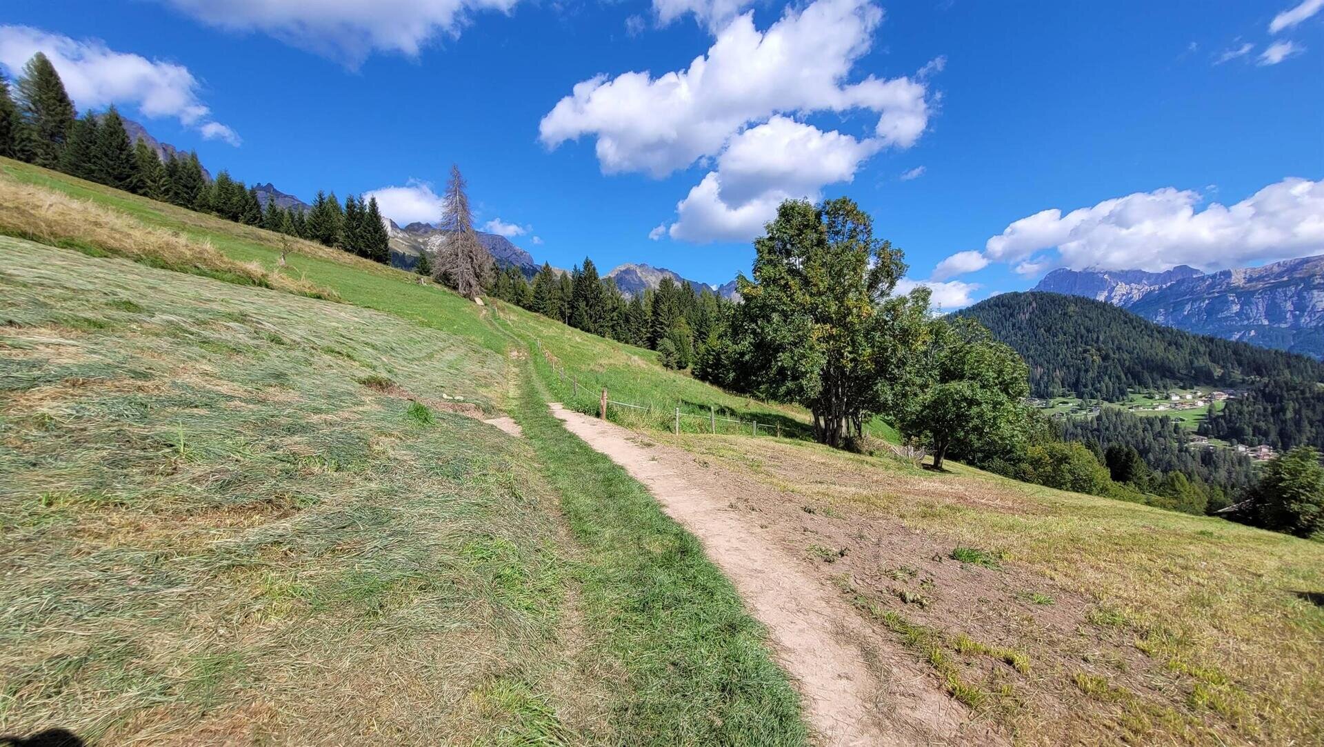 From here, only the most experienced can continue by climbing up to Pecol di San Tomaso to take the steep, narrow and technical path that descends to Forchiade and which, in addition to the single track, also includes a section by hand to overcome a landslide before reaching the "Sector 18" valley floor.
