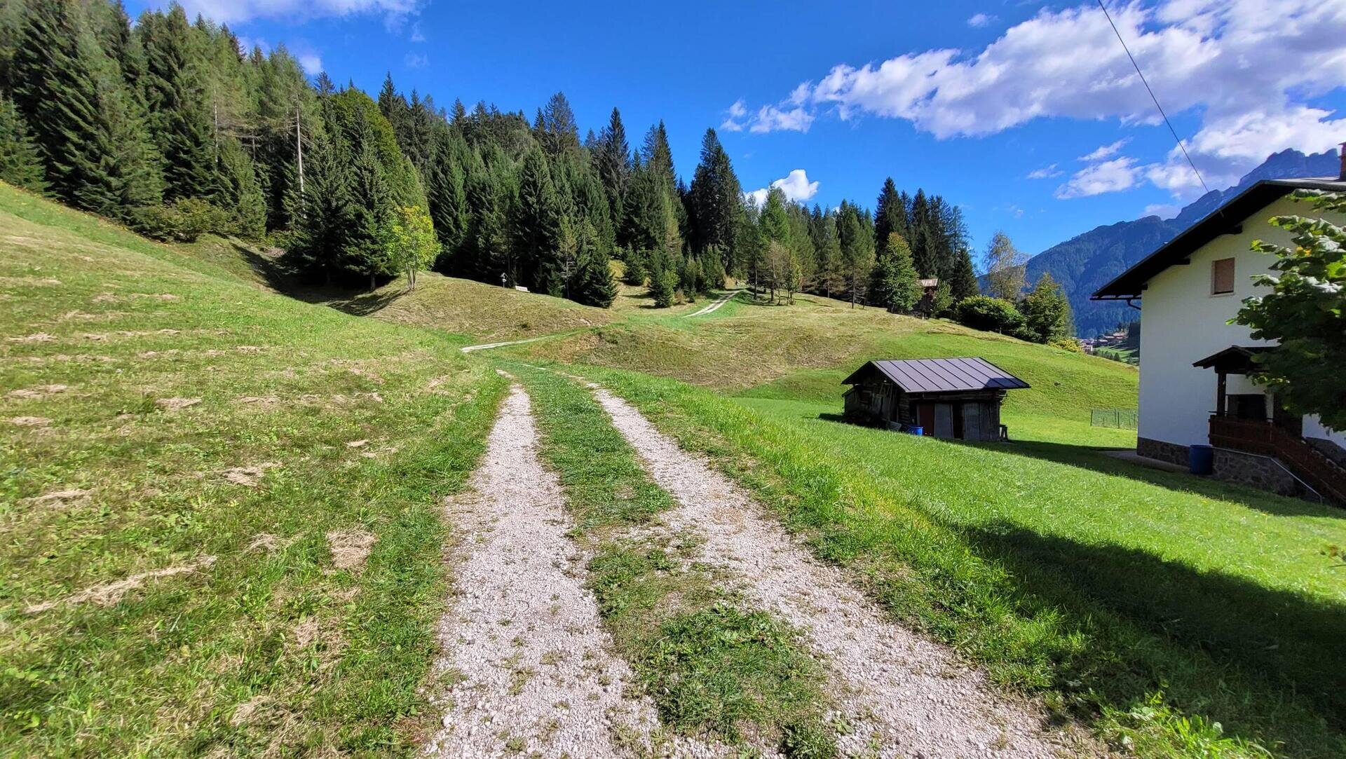 We are almost at the end. Having crossed the SR 203, go up the old road which passes through the hamlet of "Le Pale" already travelled on the outward journey as far as Masarè and then Alleghe to close the tour.